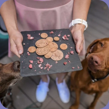 Co je nejlepší odměna po těžkym dni? Dát si packy na stůl a zakousnout nějakej dezertík - protože být nejlepší chlupáč na světě je full time job. Celej den hlídáš pevnost, odháníš veverky a kurýry, tu a tam rozcupuješ hračku a hodně se nacupitáš, než konečně páníčci dovalej z práce domů. Co si hned po jejich příchodu za dobře odvedenou práci vyžádáš? Naše ultra delikátní jahodo-tvarohový Johódy!