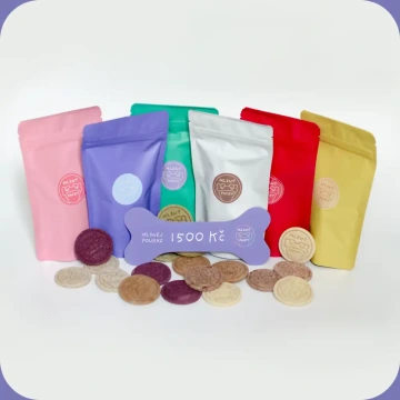 Ne že by bylo těžký nám pesanům kupovat dárečky, my se spokojíme vlastně se vším (kočky, slyšte a učte se), ale občas páníčkům dojdou nápady a už už je napadá, že vlastně dárků není potřeba. Chyba! Dárků je vždycky potřeba a zvlášť těch do bříška, mňam. Řešení je jednoduchý, vyber Mlsnej poukaz, nech si ho poslat jako zásilku v elegantní fialkové obálce nebo elektronicky do emailu a rozdávej radost psím kámošům. Vděčnost zaručená!